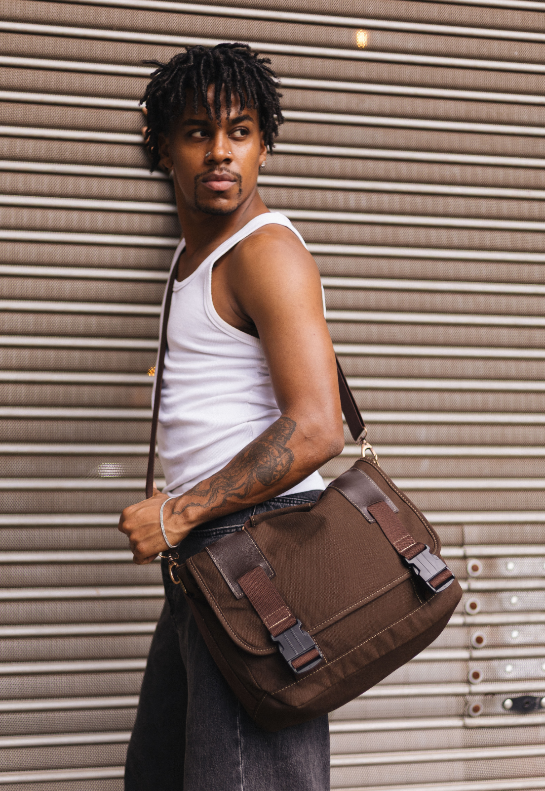 Bolsa Pasta Lenna's Carteiro Transversal de Lona Marrom LE09