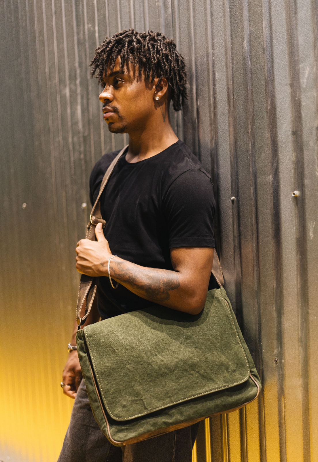 Pasta Carteiro Transversal de Lona Verde Militar A003